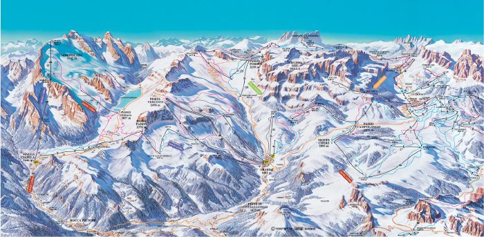 Potešenie z lyžovania umocňuje všadeprítomná krása majestátnych hôr, ktorých štíty, zvyčajne pozlátené slnkom, dodajú vášmu pobytu v srdci hôr tú správnu atmosféru. Nekorunovanou kráľovnou celej oblasti je aj najvyššia hora Dolomitov, mohutná Marmolada, týčiaca sa do 3342 mnm.