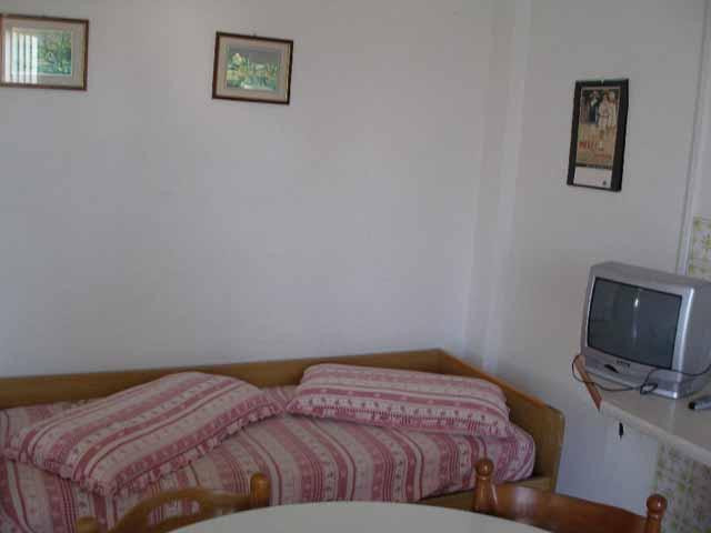 Malá třípatrová budova bez výtahu s apartmány v prvním, druhém nebo třetím poschodí. Zařízení je vkusné a funkční. Kuchyňka je vybavená kompletním nádobím, sporákem a ledničkou. Součástí ubytování je oplocená zahrada a parkoviště. Některé apartmány mají klimatizaci (za poplatek: bilo 5 Euro/den, trilo 6 Euro/den) a pračku.