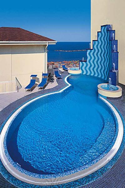 Hotel priamo pri pláži s bazénom a wellness. Centrum mesta vzdialené iba 100 m od hotela. Luxusný, prestížny hotel vhodný aj pre náročných klientov, ktorí hľadajú ubytovanie priamo pri pláži a centra mestečka.