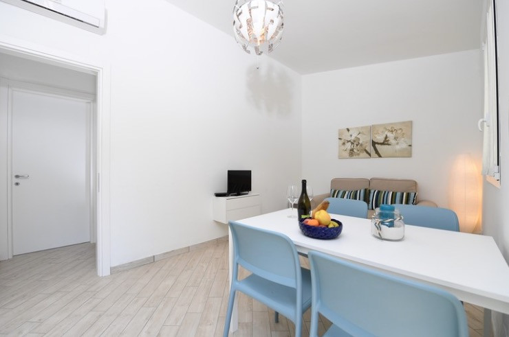 - Marina: pre max. 4 osoby. Nachádza sa v blízkosti pláže v 2 poschodových budovách. Obývacia miestnosť s rozkladacím gaučom, izba s manželskou posteľou, sociálne zariadenie, kuchynský kút, terasa s barbecue, klimatizácia, TV.