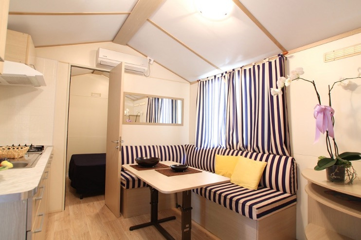 - Mimosa: pre max. 6 osôb. Izba s manželskou posteľou, izba s 2 lôžkami, obývacia miestnosť s kuchynským kútom a rozkladacím gaučom, sociálne zariadenie.