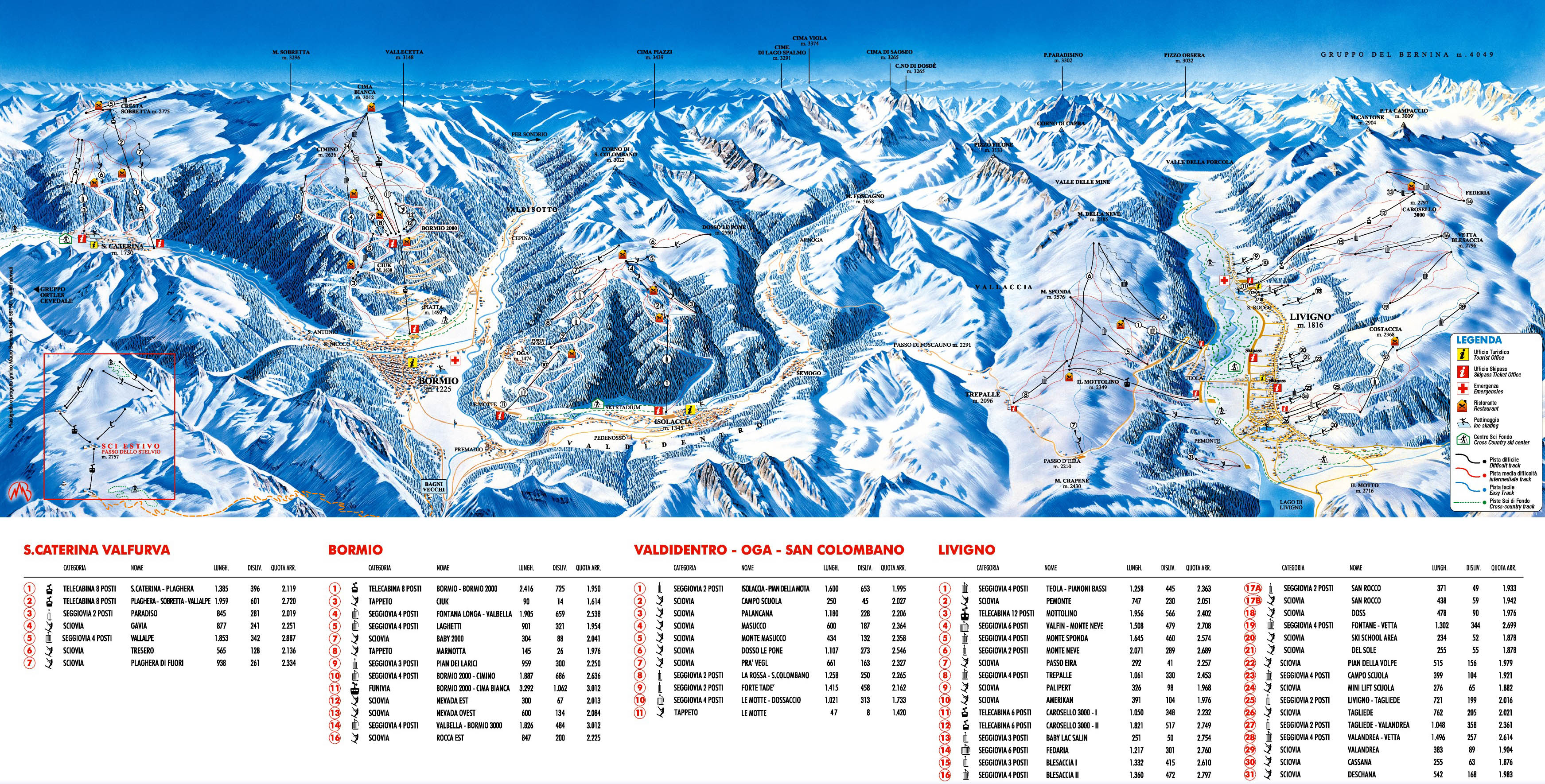 Livigno , Bormio , Valdidentro / Oga / San Colombano a Santa Caterina.