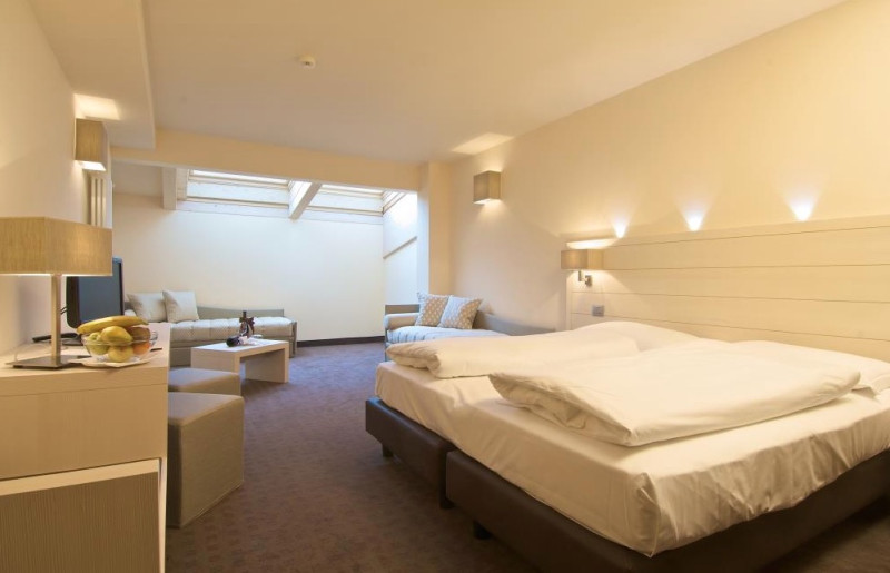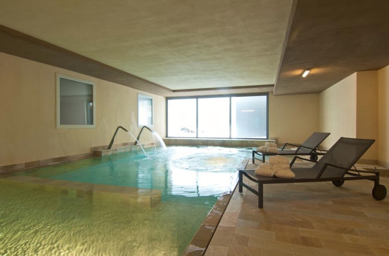 Štvorposchodová moderná budova ponúka ubytovanie v dvojposteľových až štvorlôžkových izbách. Súčasťou budovy je recepcia, vstupná hala, bar s panoramatickým výhľadom, piano bar, reštaurácia, spoločenská miestnosť s TV sat., detský kútik, čitáreň, lyžiareň, internet wifi v spoločných priestoroch, animačné programy, parkovacie miesta (niektoré sú kryté), garáže (za poplatok). Hotel má krásne wellness centrum s vyhrievaným bazénom a detským bazénom (30°C), ležadlami, vírivkou, tureckým kúpeľom, umelým vodopádom, fínskou saunou, ľadovým kúpeľom. Masáže a beauty procedúry za poplatok.