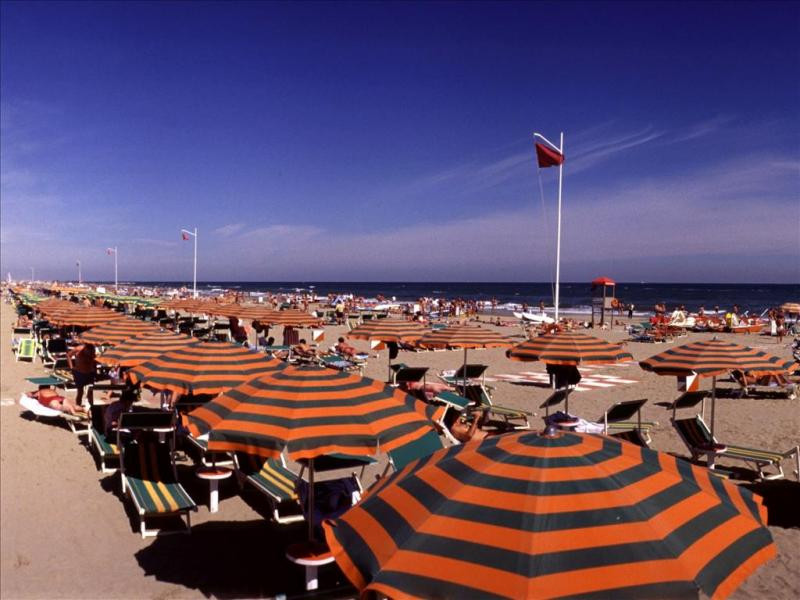 Pre pobrežie Rimini je typická veľmi široká a dlhá pláž so zlatistým jemným pieskom a priľahlou promenádou. Pláž je vhodná pre rodiny s malými deťmi, pretože má pozvoľný vstup do vody. Hotel leží cca 70 m od hotelovej pláže. Vodné športy na pláži za poplatok.