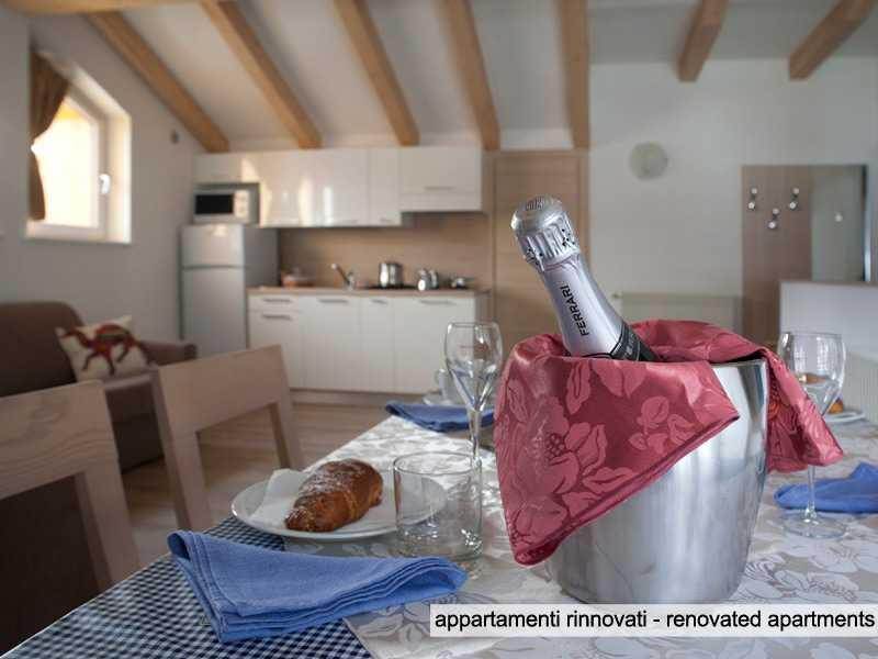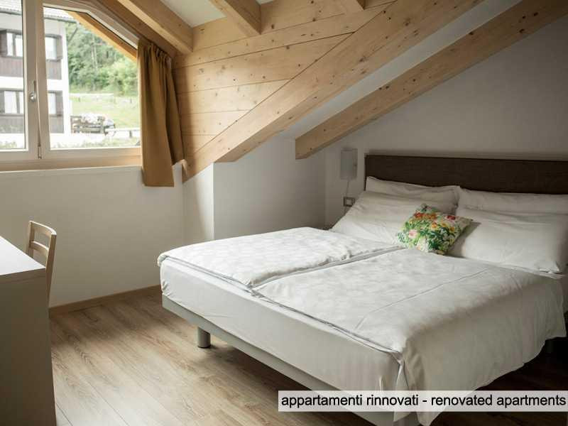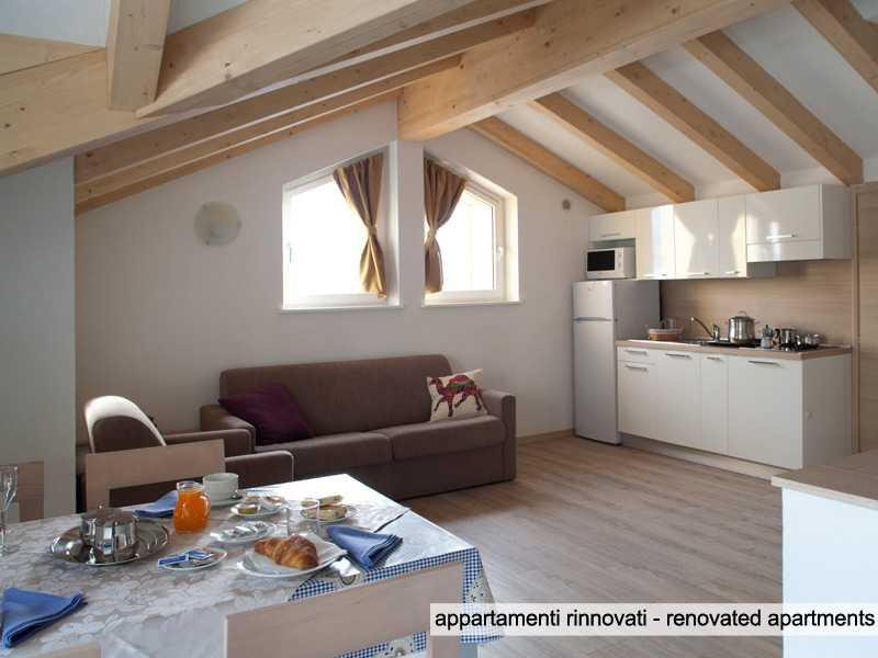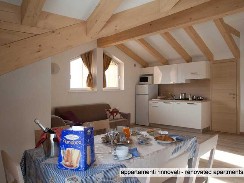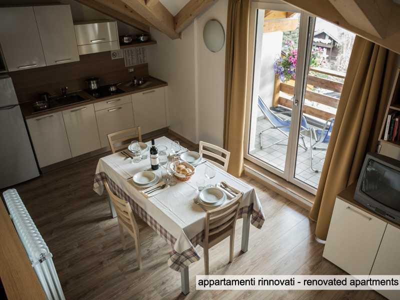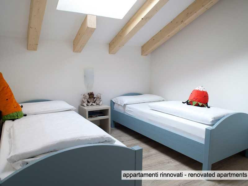 Komplex bez výťahu sa skladá z 3 budov, ktoré sa nachádzajú vedľa aparthotela, kde môžu klienti využívať jeho služby. Ubytovanie je v apartmánoch typu trilo a quadrilo, ktoré sú zariadené v klasickom horskom štýle, niektoré apartmány boli nedávno zrekonštruované. Klienti môžu využívať služby aparthotela (cca 50 m od ubytovania), kde je k dispozícii veľká hala s možnosťou pripojenia k internetu, reštaurácia / pizzeria, vnútorný bazén (povinná kúpacia čiapka), fínska a turecká sauna, vírivka, posilňovňa, detský kútik, garáž (5 Euro / deň), práčovňa (za poplatok), parkovisko.